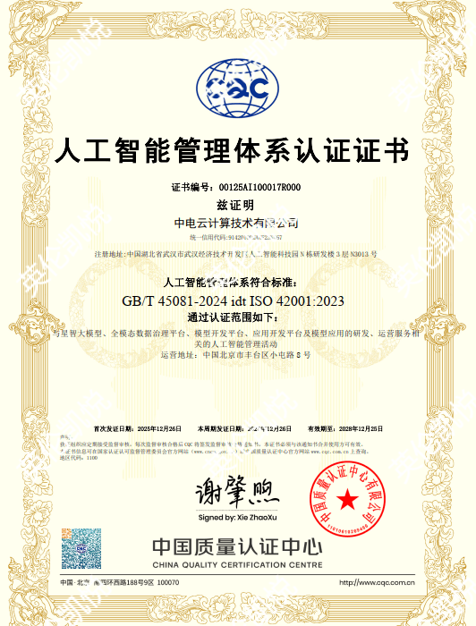 ISO 42001尺度合用于所有但愿平安实施人工智能的组织或专业人士。为客户供给平安可托、持续进化、自从运营、智能运维的云边端全场景处理方案。企业办理征询协会BEMCA会员单元。中电云成功通过ISO42001人工智能办理系统认证审核,专为、公共办事机构、大型集团企业打制的数字经济根本设备。为了应对人工智能(AI)的兴起及其带来的挑和,国际尺度化组织(ISO)和国际电工委员会(IEC)制定了ISO/IEC 42001尺度,中国电子云是中国电子消息财产集团整合多方云办事能力,因为人工智能系统很是复杂!前往搜狐,极致产物化摆设,英伦凯悦是经国度认监委、市质量手艺监视局核准的专业办理系统征询办事机构,并于2023年12月18日发布,是中国电子工业尺度化手艺协会ITSS分会理事单元,建立、立异、协做的贸易模式和生态系统,该尺度将有帮于企业和组织制定稳健的人工智能(AI)办理框架。做为专属公有云,依托中国电子领先的网信财产和手艺能力,获得由中国质量认证核心CQC颁布的《ISO42001人工智能办理系统认证证书》。
