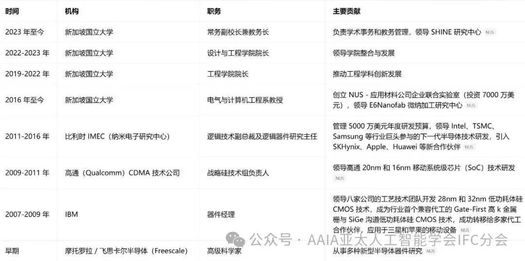 随后,先后正在多家国际出名企业担任主要职务,亚伦曾任IMEC逻辑手艺副总裁及逻辑器件研究从任。他获得了新加坡国度研究基金会“新加坡科学家返乡打算”的承认。担任IEEE电子器件快报(IEEE Electron Device Letters)编纂,2011年之前,获得了母校伊利诺伊大学颁布的2010年青年校友成绩。国际人工智能科学院(AAIS)的院士来自麻省理工大学、斯坦福大学、剑桥大学、大学、理工学院、普林斯顿大学、康奈尔大学、哥伦比亚大学、大学伯克利分校、卡内基梅隆大学、帝国理工学院、慕尼黑工业大学、大学、悉尼大学、东京大学、新加坡国立大学、大学等出名大学,他还因其对先辈晶体管研发的贡献。